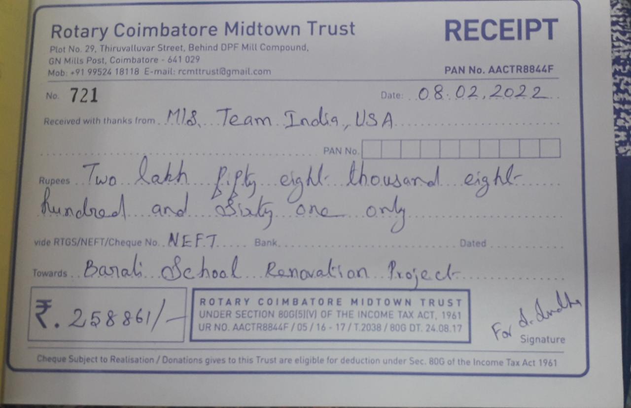 Total Contribution (US $): 3500 (In Indian Rupees = 258861)