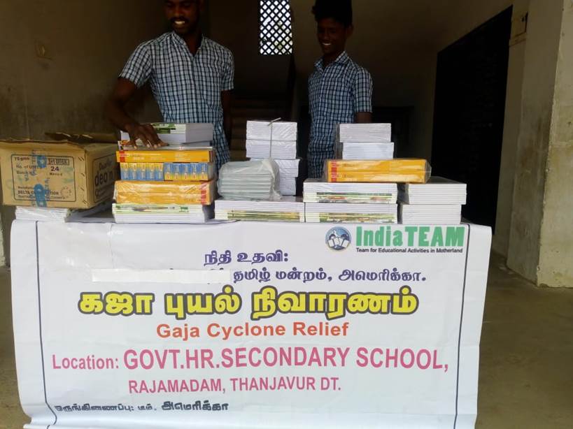 Vardha Cyclone Relief Effort: (Rajamadam Thanjavur, Provided School Books to students who lost their livelihood, Executed by Julie Rajesh’s Mother)